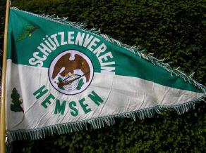 Anläßlich der Neugründung des Schützenverein Hemsen im Frühjahr 1949 meldete sich seinerzeit Josef Ewers und erklärte, dass sich die Vereinsfahne des früheren Kriegervereins in seinem Besitz befinde. Die Fahne trug die Inschrift "Kriegerverein". Da Kriegervereine seinerzeit noch von der Militärregierung verboten waren, wurde das Wort "Krieger" durch das Wort "Schützen" ersetzt. Weiter wurde hinzugefügt: "gegründet 1949". Auch wurden die Schärpen für die Fahnenträger und die Begleiter wieder aufgefunden.